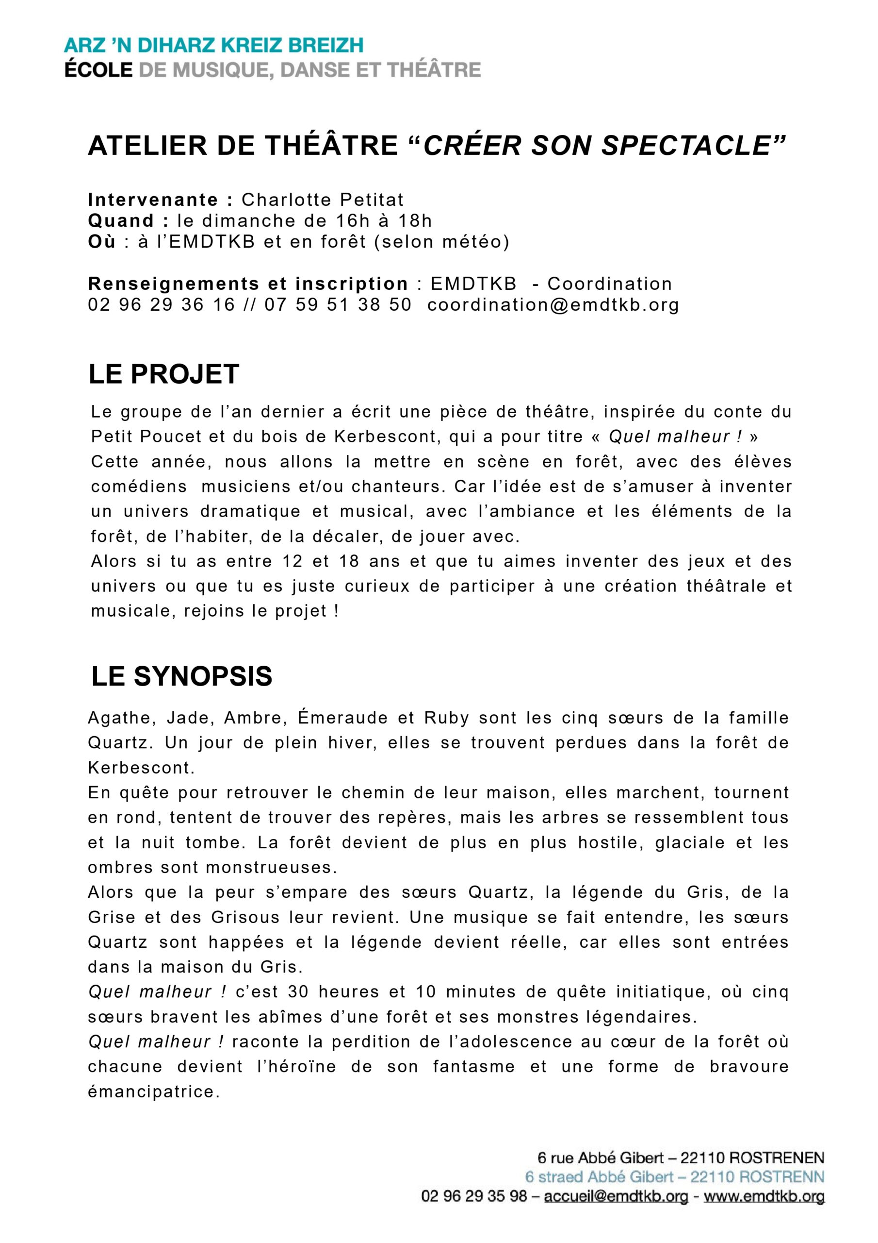 - Théâtre Adultes (le lundi à Saint Gilles Pligeaux) avec Gwénaële Le Doussal